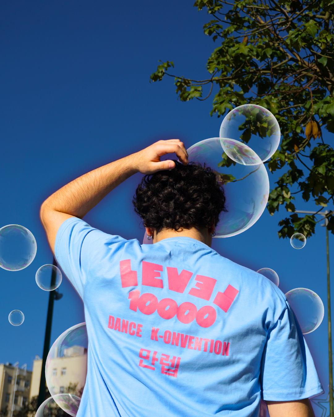 This sky blue tee is main character coded. Inspired by korean culture, fan energy, and late-night practice rooms. Designed to move, styled to stand out.  Official merch for LVL10K Athens (13 +14 Dec 2025)